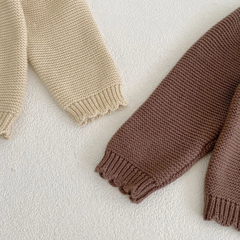 Spring new baby clothing, 0-3 year old boys and girls children's round neck handmade hooked edge clean color knitted sweater
