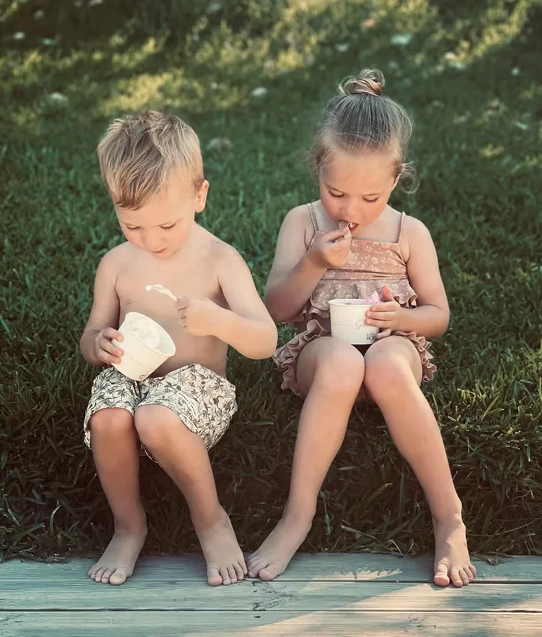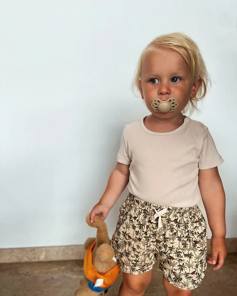 Summer Ks Children Clothes Suit Unisex Solid Stripe Top T Shirt Shorts Baby Cute Casual Romper Boys Girls Dinosaur Blouse Pants