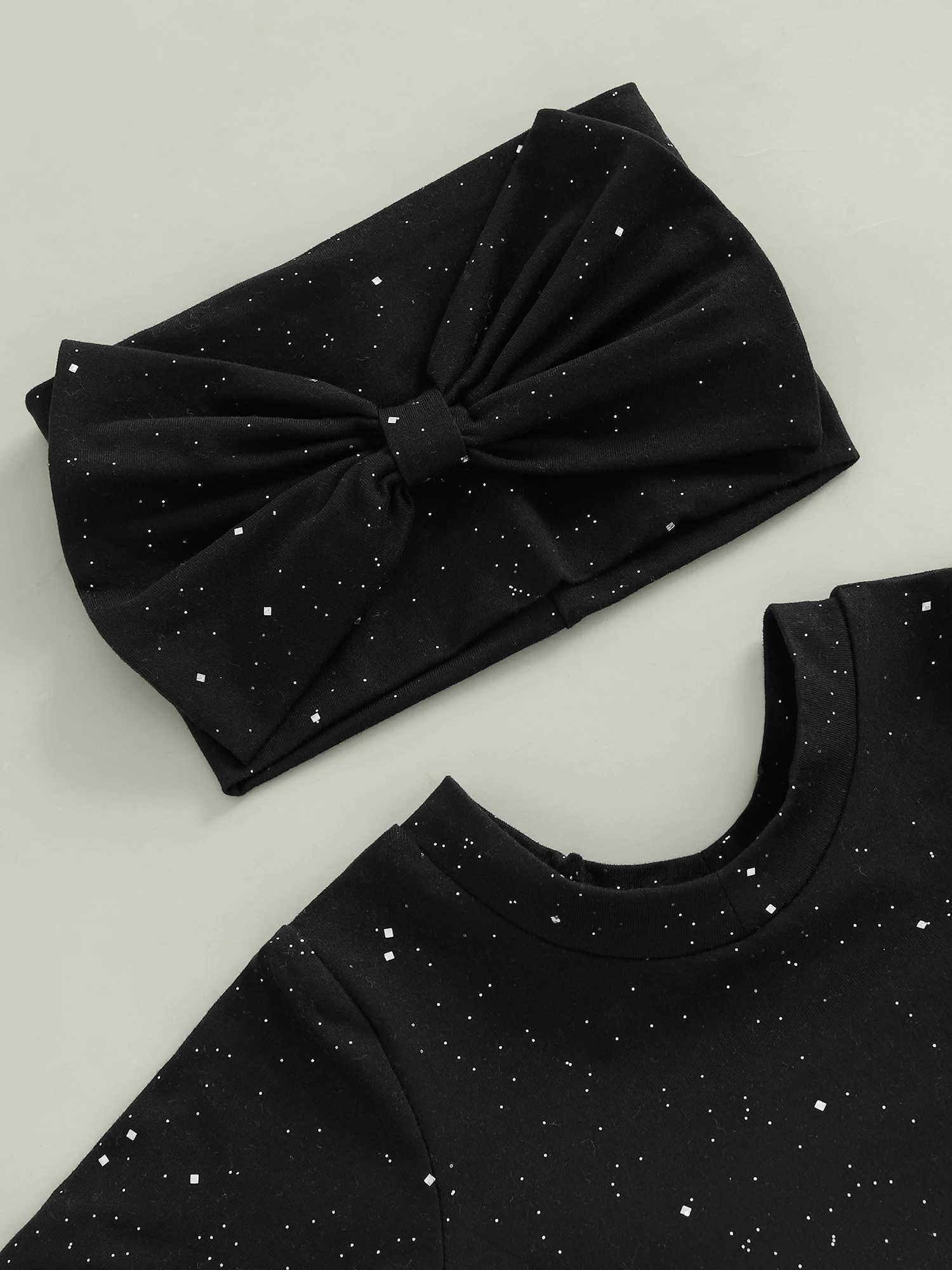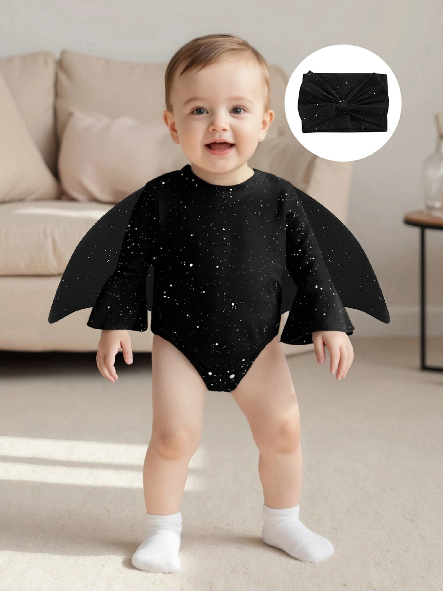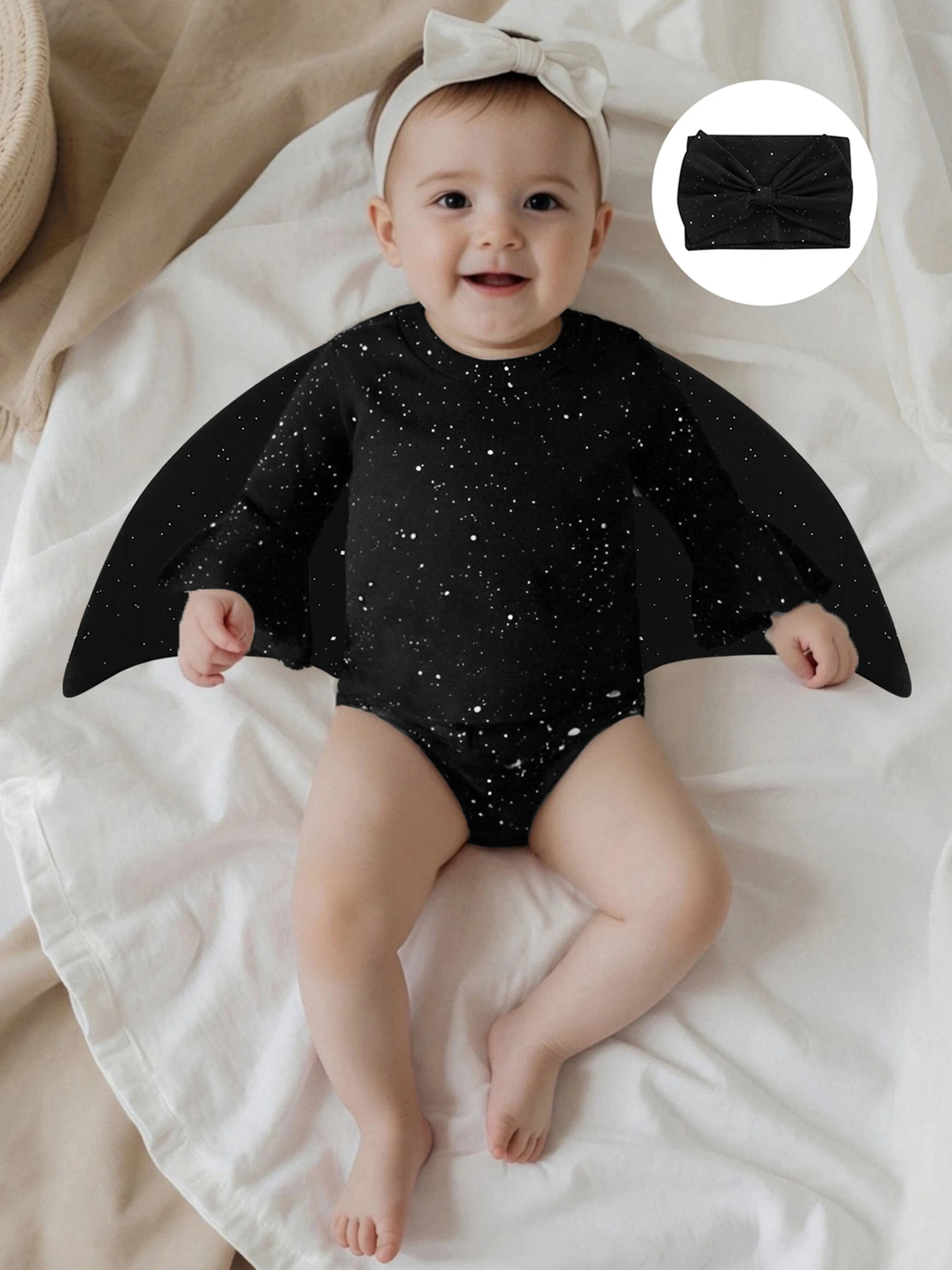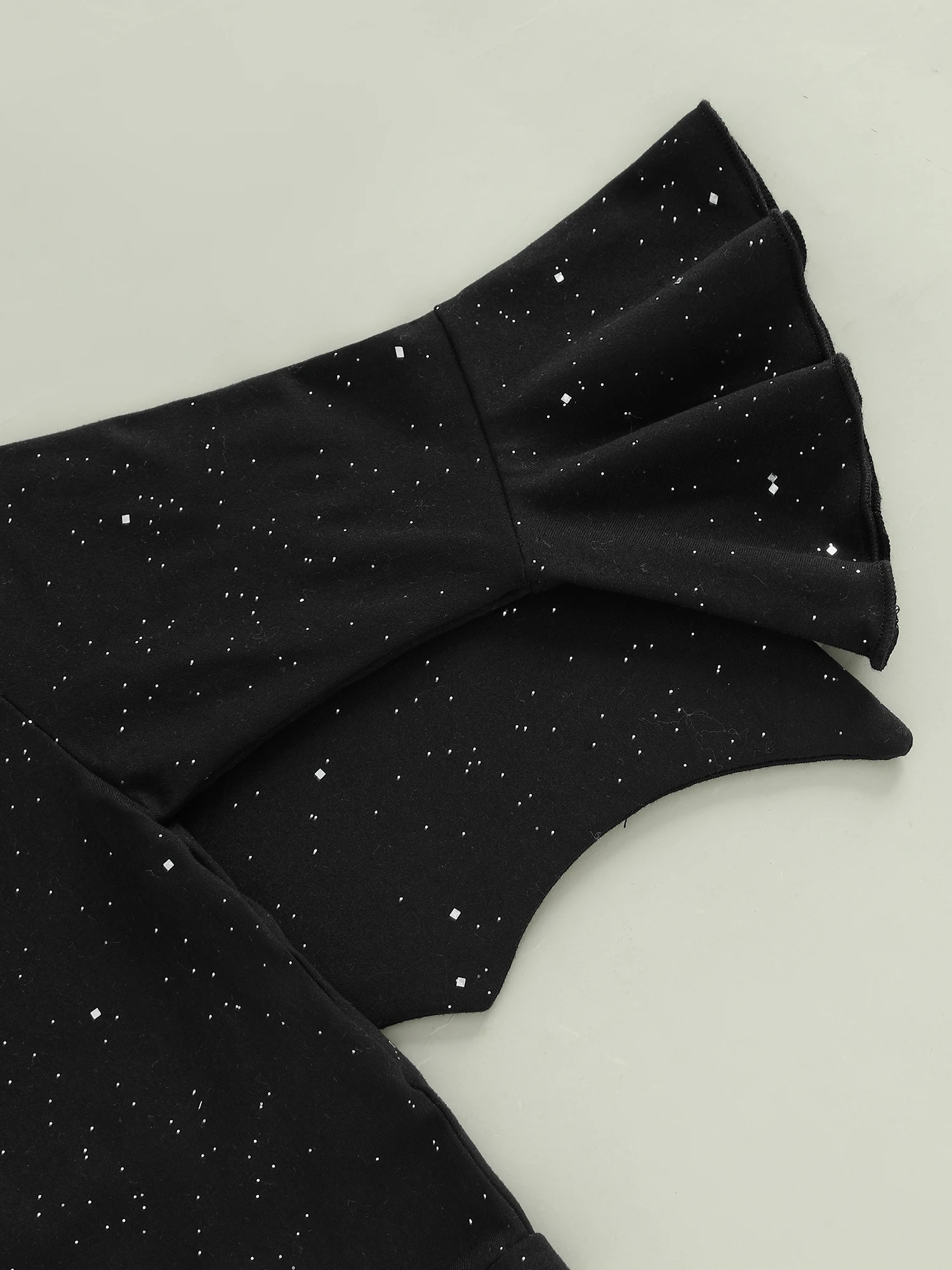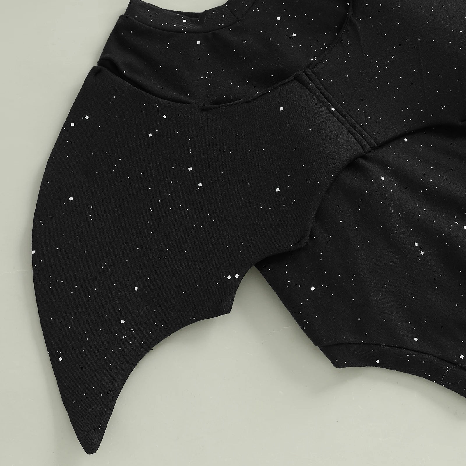 Toddler Baby Girl Bat Costumes Glitter Batwing Long Sleeve Romper with Bow Headband 2 Piece Halloween Outfit