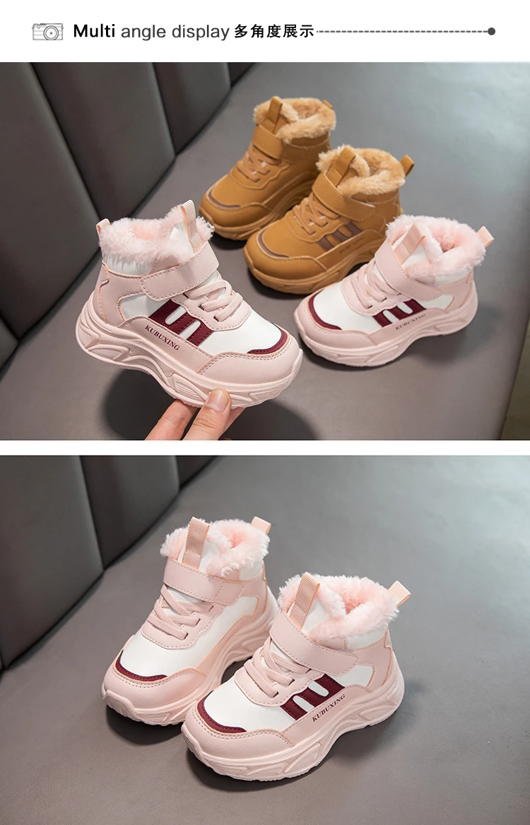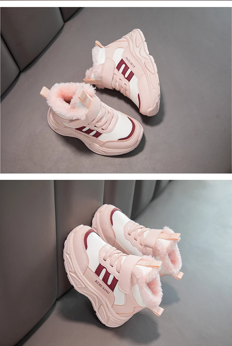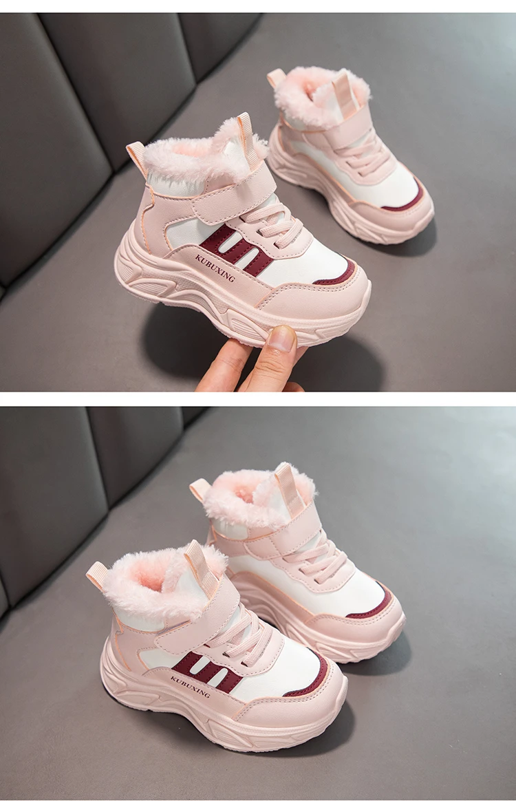 Warm Children Snow Boots Warm Girls Sneaker Plush Outdoor Walking Sports Kids Fashion Platform Fur Girls Shoes